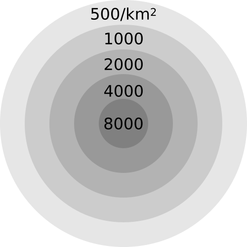 The average density of the city region is 1,660 people per square kilometer, and the weighted density is about 3,400; both figures are typical for the denser American Sunbelt cities, like Los Angeles, San Diego, Miami, and Las Vegas (see table as of 2000 here).
