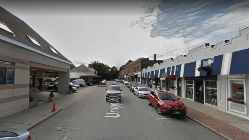 The light rail station is just to the left (south) of the street. This is a walkable suburban street with a train that comes pretty frequently all day, and yet the dominant mode of transportation here is clearly cars, as one can see in the parking lot to the left. Transit usage here is similar to the metro area’s average – Newton averages 11.9%, the Boston metro area 13.4% – but this says more about the rest of metro Boston than about Newton Centre. Nonetheless, such a location is convenient to access from the city if one lives near the Green Line, and is also reasonable convenient by car, as it is just 4 km from the freeway, and the majority of the distance is along the fast arterial that is Route 9.