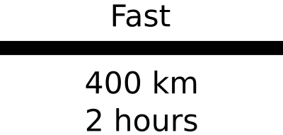 The arguments I’m about to present are not entirely new. To some extent, I discussed an analog years ago when arguing that in the presence of a complete high-speed line, the benefits of building further extensions are large; this post is a generalization of what I wrote in 2013. Then, a few months ago, I blogged about positive and negative interactions. I didn’t discuss high-speed rail, but the effect of travel time on ridership is such that different segments of the same line positively interact.