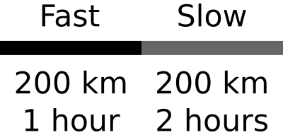 The benefits of reducing travel time per unit of absolute amount of time saved always increase in speed; they never decrease. The gravity model holds that ridership follows an inverse square law in total cost, including ticket fare and the passengers’ value of time, which time includes access and egress time. Reducing in-vehicle travel time by a fixed amount, say an hour, increases ridership more if the initial travel time is already lower.