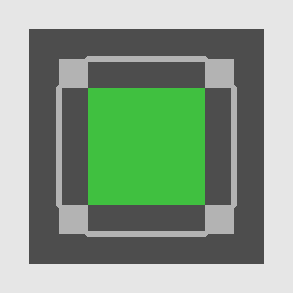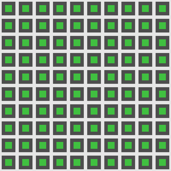 This is 100*100 meter blocks, with 20-meter wide streets; this is not intended to be a city for cars, but at high residential density it’s useful to widen the streets somewhat to provide ample walking and cycling space and to allow very tall buildings while keeping the building height-to-street width ratio reasonable. The buildings are in dark gray, in euroblock form with the courtyards denoted in green.