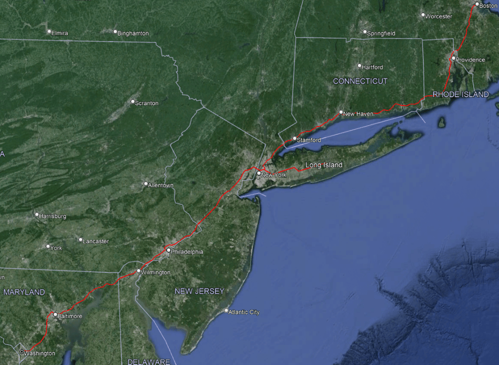 The difference is that I-95 is a 120 km corridor flat enough not to require tunnels whereas the New Haven-Hartford-Worcester-Boston route is longer and isn’t happening without tunnels.
