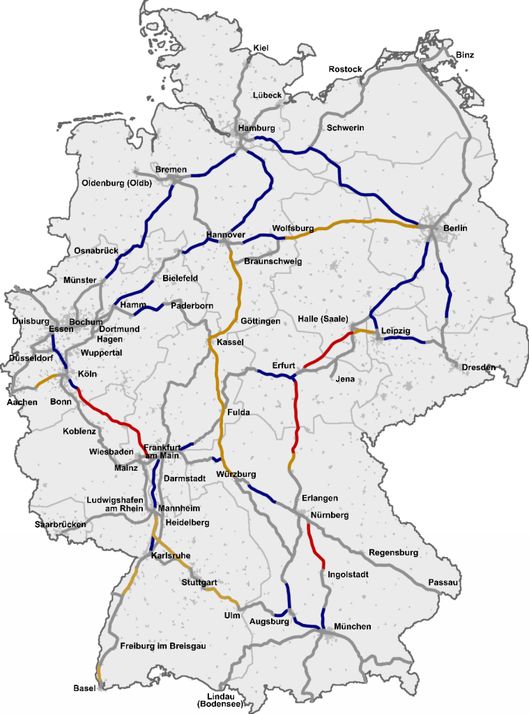 - Building all the currently discussed high-speed lines, like Frankfurt-Mannheim, Ulm-Augsburg (Stuttgart-Ulm is already under construction), and Hanover-Bielefeld.